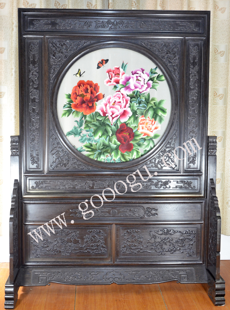 嬌古蘇繡木質屏風 玄關雙面繡... |